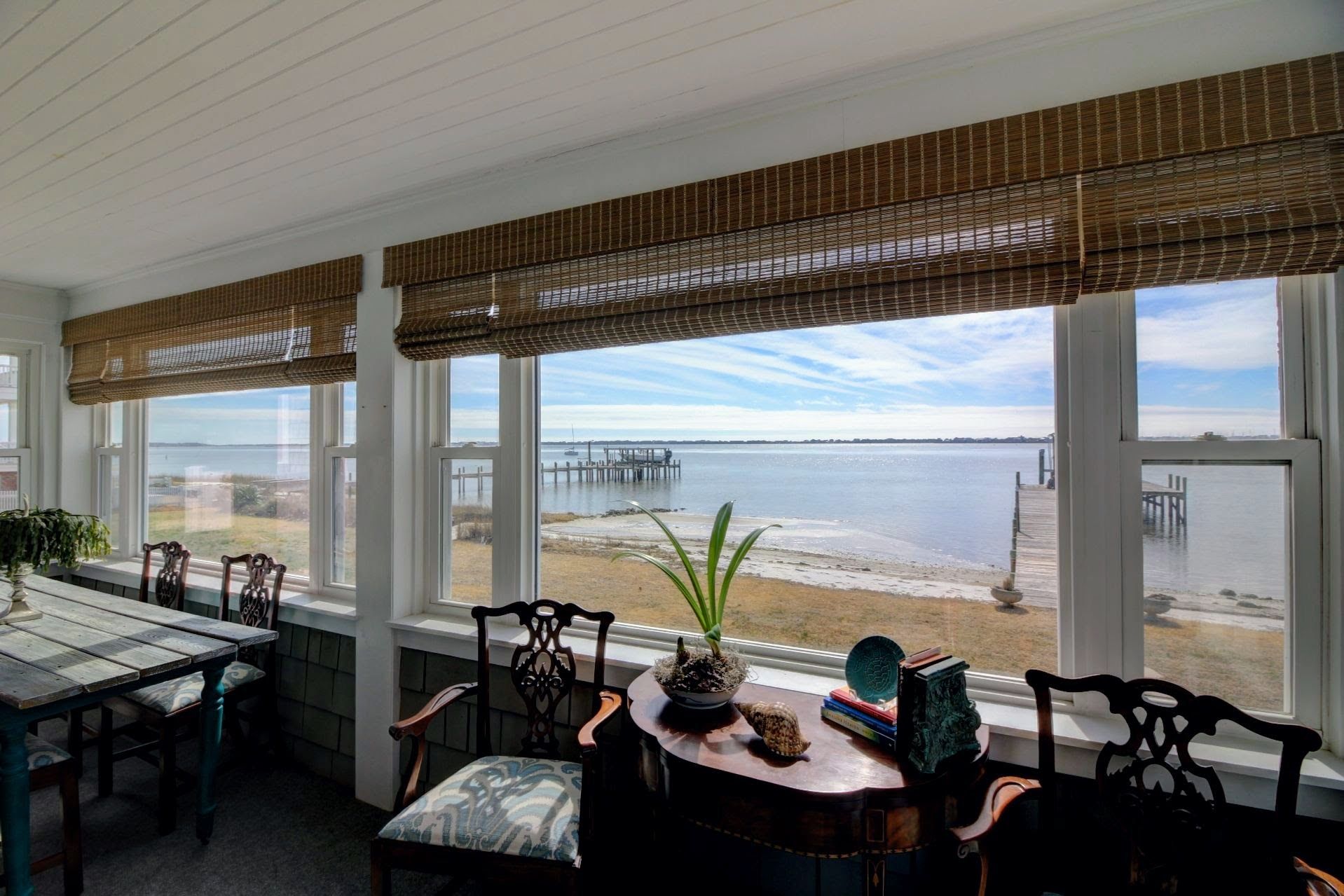 When you enter, the inside will captivate you with stained tongue and groove knotty pine throughout most rooms of this home. Sweeping views of the ICW and Atlantic Beach Bridge can be seen from the living room, kitchen, and master bedroom. The sunroom, located just off the living room is the perfect spot in the house for gazing at the water.